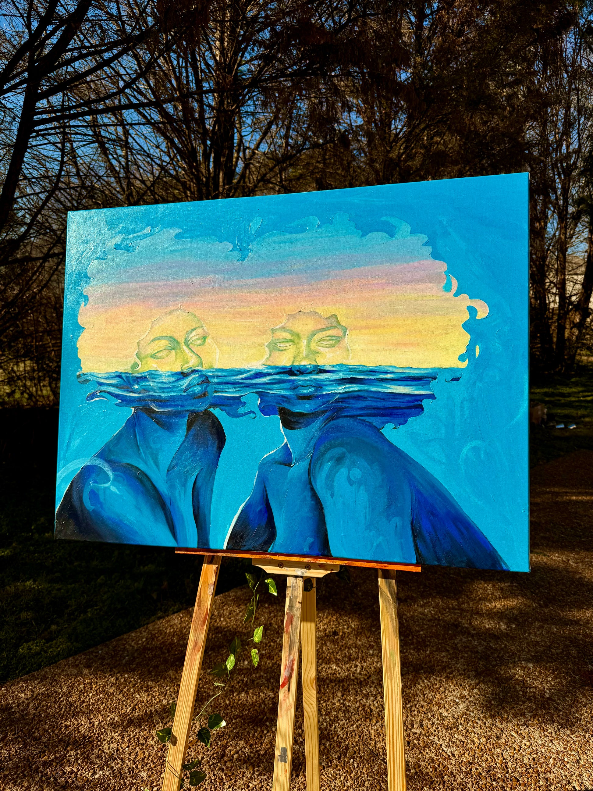 Original 1/1 Fine Art Painting handmade by javon angela. size 30 x 40 on thick stretche canvas . primed for protection. acrylic medium. The ocean in the two conjoined women.